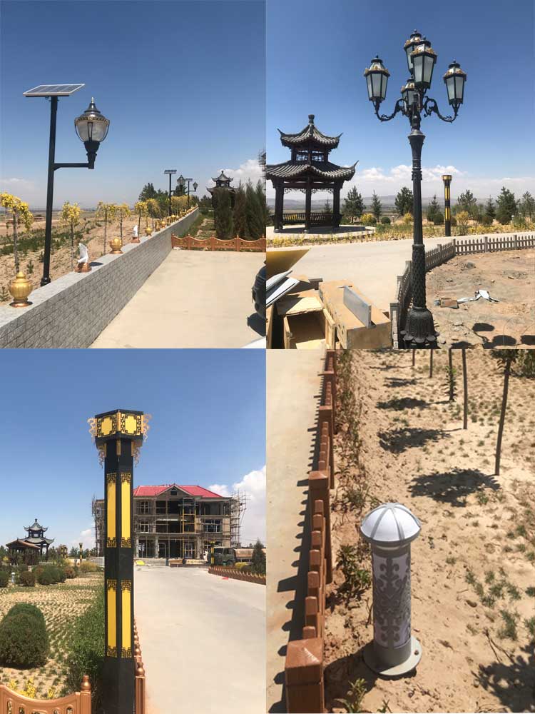 寧夏吳忠市同心縣景觀燈、庭院燈、草坪燈系列項目,是我公司與2018年5月完成的具有當地風格的特色燈具,我們提供給客戶的這批產品都是都是根據客戶的需求,安裝公司圖冊進行生產的,每款燈都有特色,全部安裝的是市電庭院燈、景觀燈、草坪燈。