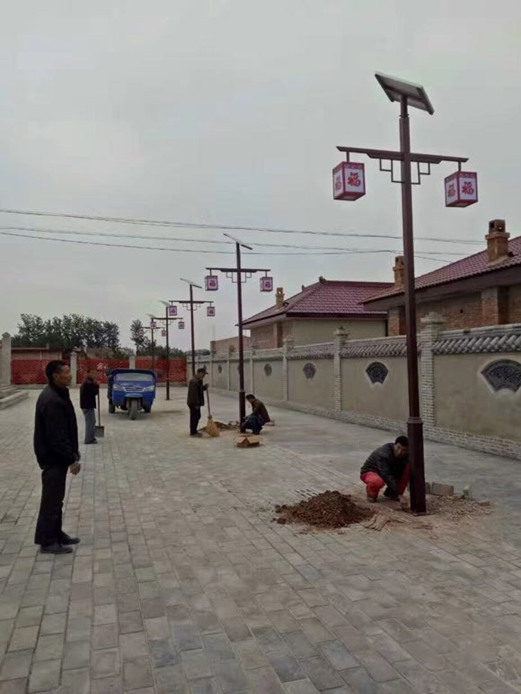 甘肅省慶陽市西峰區(qū)太陽能庭院景觀燈工程,采購了我們蘭光照明倆種形式的配套組合景觀燈具,采用單板雙頭20W,中國福燈籠造型,燈體主體采用深棕色配中國紅,配合3.5米高中國紅庭院柱燈,相互照應(yīng)配合,使得整體景區(qū)體現(xiàn)出濃濃的喜慶特色。