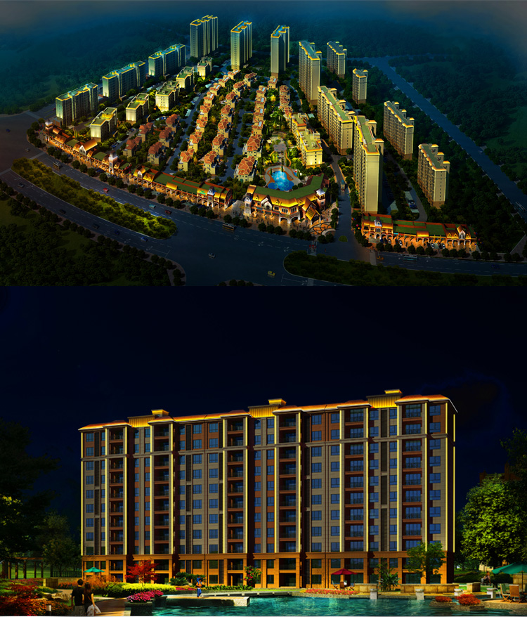 簡(jiǎn)介—— 碧桂園小區(qū)建筑泛光照明,建筑輪廓照明和局部重點(diǎn)照明進(jìn)行建筑環(huán)境景觀的在塑造,設(shè)計(jì)中舍棄了景觀中繁瑣細(xì)節(jié)的表現(xiàn),將較直觀的景觀以大氣的燈光渲染出來(lái),營(yíng)造大氣的燈光氛圍,以節(jié)能而質(zhì)樸的燈光為市民營(yíng)造一個(gè)優(yōu)美高雅的夜間環(huán)境,為韓城夜色添了一道亮麗風(fēng)景。打造出綠色的主題思想。
