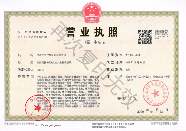 陜西蘭光戶外照明有限公司 營業執照